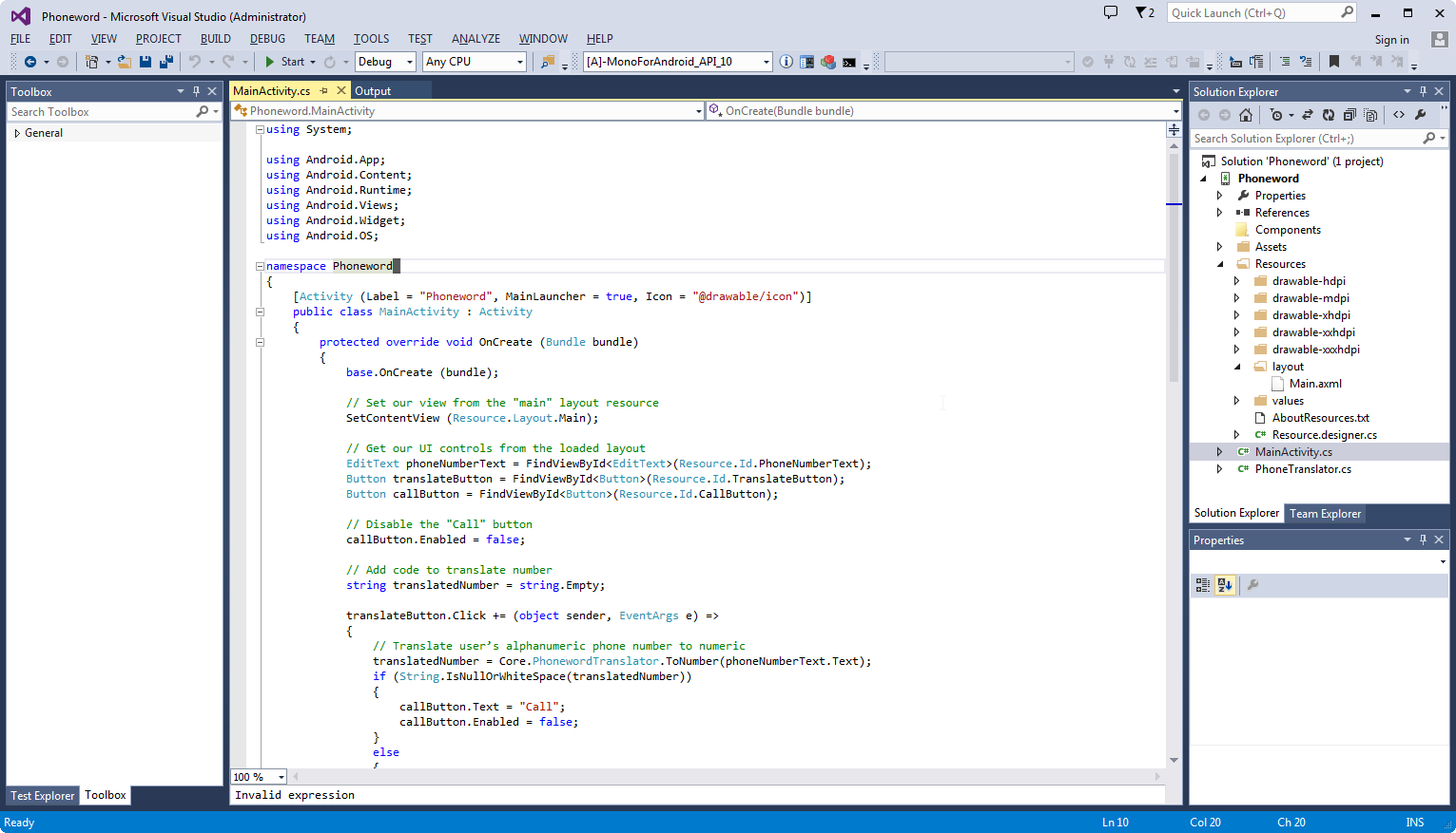 [Activity(Label = "Phoneword", MainLauncher = true, Icon = "@drawable/icon")]