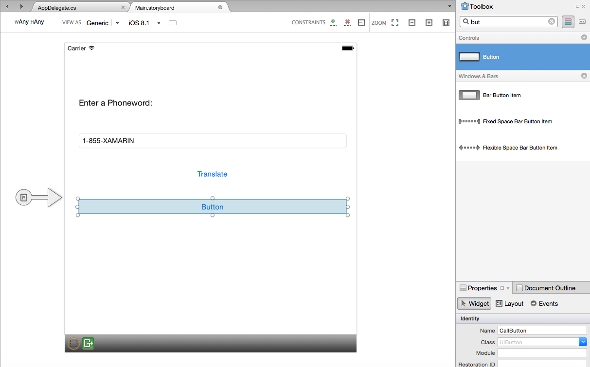 Next, we’ll open the Main.storyboard file by double-clicking on it in the Solution Pad. This will allow us to create our UI:
