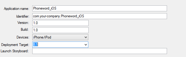 In the iOS Application Target section, let’s change the Application Name to "Phoneword":