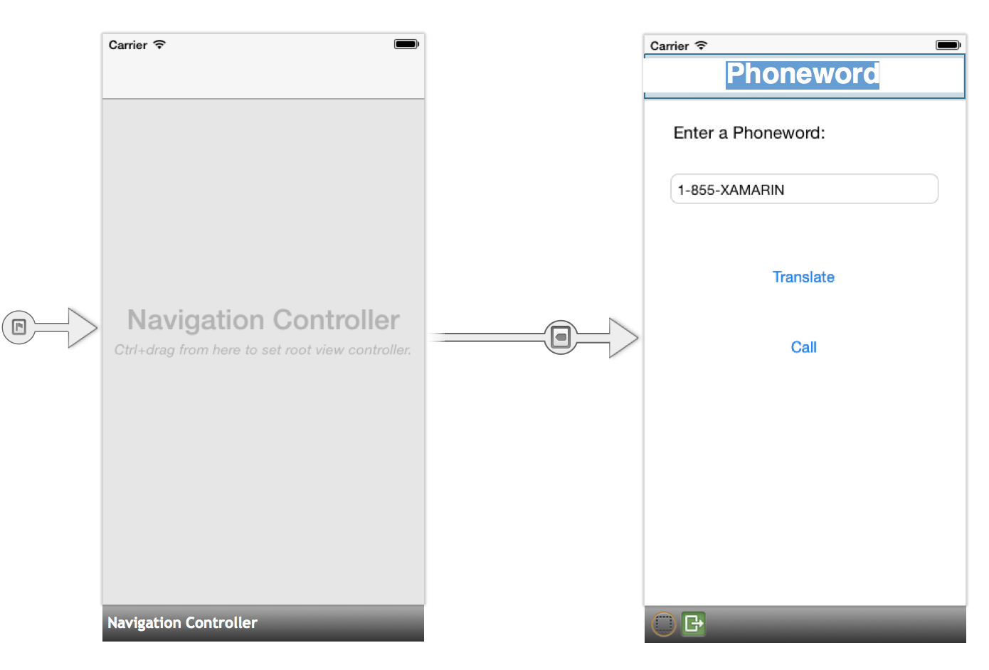 key, drag from the Navigation Controller to the Phoneword Scene and release. This is called Ctrl-dragging: