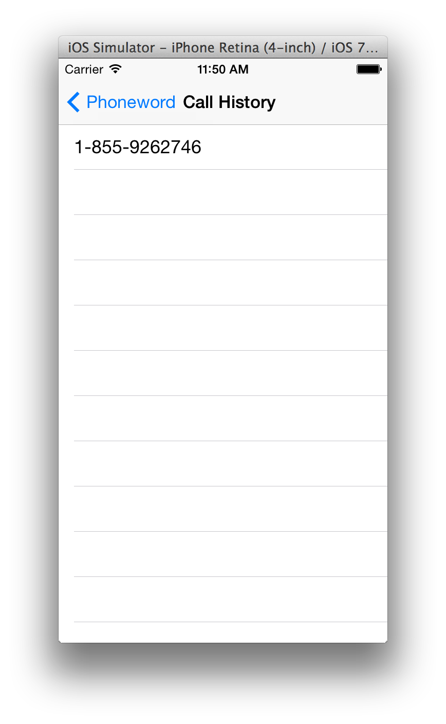 but the Table View will be empty because we have no code to keep track of phone numbers. Let’s add that functionality.