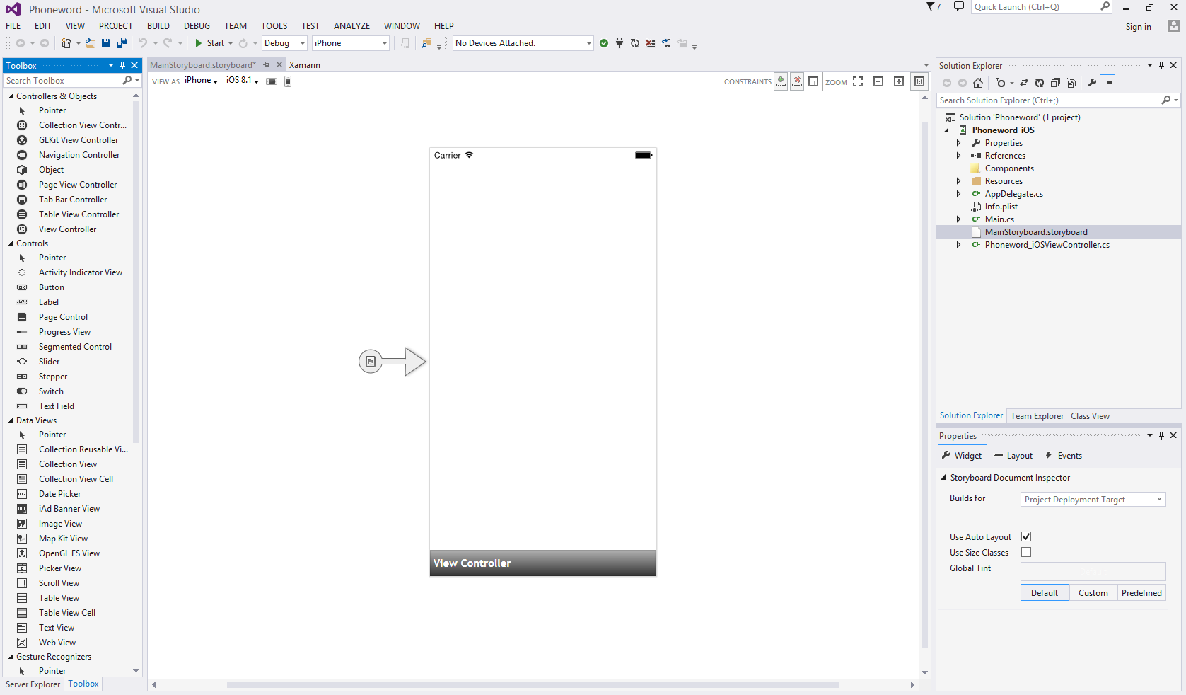 Next, we’ll open the MainStoryboard.storyboard file by double-clicking on it in the Solution Pane: