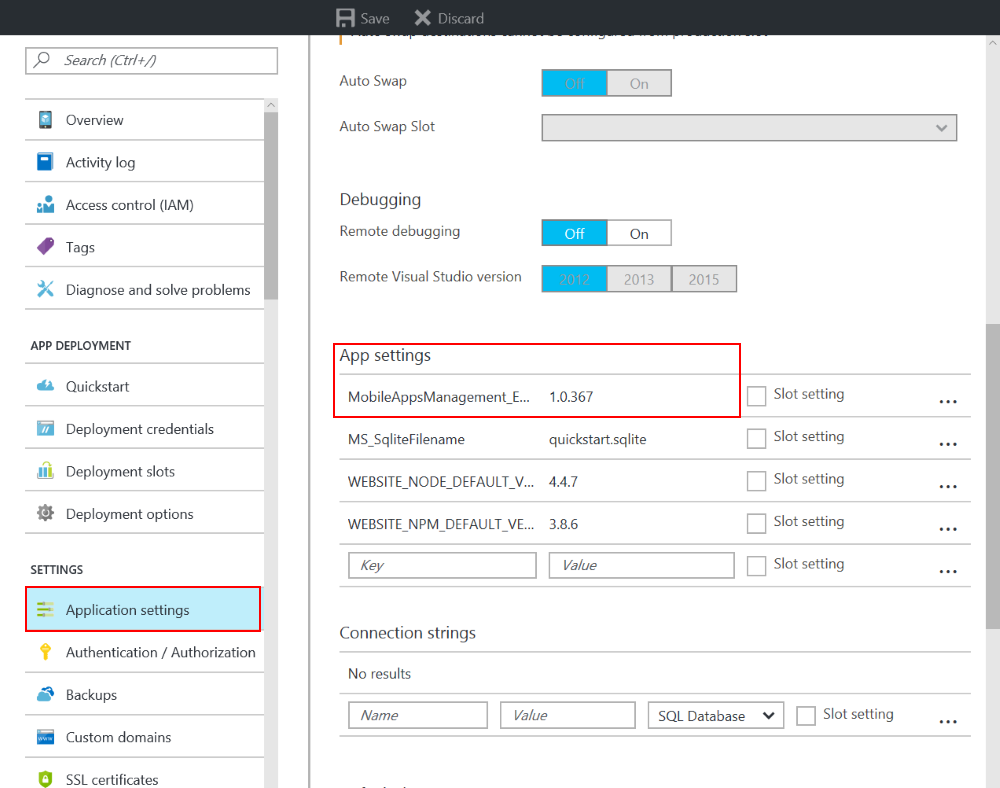Note: If you get an error while uploading the Speaker.CSV file, it may be a bug that has been resolved. To workaround this, go to the "Application settings" under the "Settings" section and scoll down to "App Settings". Change the value for MobileAppsManagement_EXTENSION_VERSION to 1.0.367 and save the changes. Now retry the "Add from CSV" process again